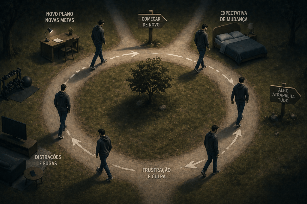 Nas redes sociais, isso aparece o tempo inteiro. Pessoas compram cursos sobre produtividade, salvam vídeos sobre disciplina, montam rotinas perfeitas, compartilham frases sobre foco e autocontrole… e ainda assim continuam repetindo exatamente o comportamento que dizem querer deixar para trás. O curioso é que, quase sempre, a explicação popular vem pronta: preguiça, falta de disciplina, desorganização, fraqueza. Só que essa leitura é pobre demais para dar conta do que está realmente acontecendo.