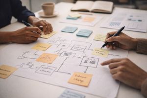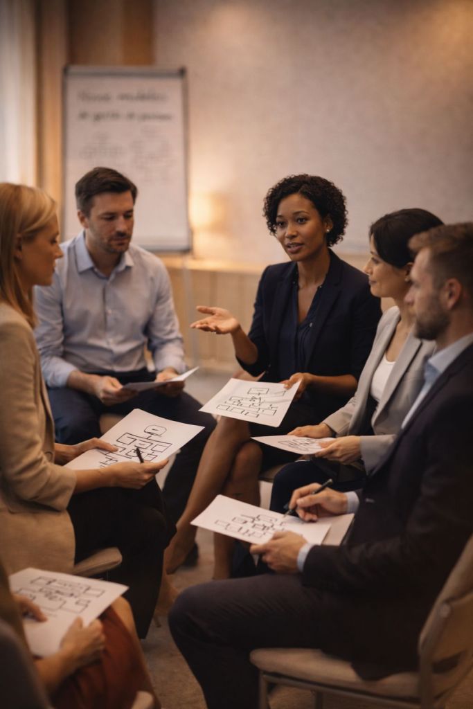 Desenhamos experiências estruturadas que conectam conteúdo, prática e reflexão, respeitando o ritmo e o contexto de cada organização.